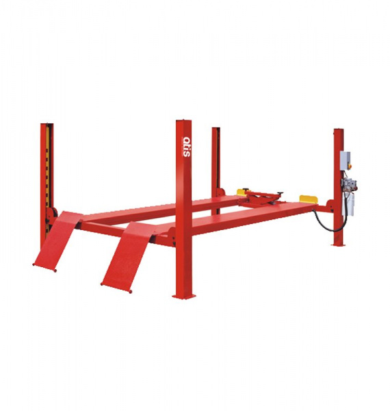 Четырехстоечный электрогидравлический подъемник А465, грузоподъемность 6.5 тн, пневматическое управление стопорами. Электрогидравлический привод. Пневматическая система безопасности с электронным контролем. Многопозиционный замок безопасности у трапов. Регулируемый замок безопасности у трапов гарантирует синхронизацию трапов по высоте. Двойное устройство безопасности: если замки безопасности у трапов не сработают, подъемник будет автоматически заблокирован дублирующим устройством. Складные заездные трапы.