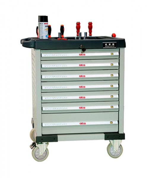 Инструментальная тележка ATIS FY707. Кол-во выдвижных ящиков - 7. Центральный замок. Размер малого ящика (6шт.) - 570*400*70мм. Размер большого ящика (1 шт.) - 570*400*150мм. Габариты 800*470*900мм. Нагрузка до 350кг. Толщина метала 1-1,5мм. Инструментальная тележка имеет внутри себя ряд удобных полочек, за счёт этого можно разложить инструменты в нужном порядке, хранить в тележке можно любыеинструменты. Существуют разнообразные комплектации инструментальных тележек, они могут иметь два и более колеса, могут быть оснащены педальными тормозами, могут насчитывать разное количество полочек, а могут иметь вид ящика, то есть без полок. Тележку для инструментов можно использовать для перевозкиинструментов среднего размера, для транспортировки заготовок и крупныхинструментов.